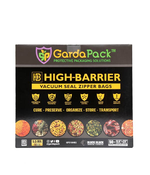 Our 5.5-Mil High-Barrier Pro line has an extra layer of protection that keeps products fresher for up to 5-10x longer. The multiple layers of polymer film create an extra strong barrier that prevents odor, moisture, and other contaminants from entering or exiting the bag. Your products’ quality is effectively maintained, and in some cases, improved while in storage.