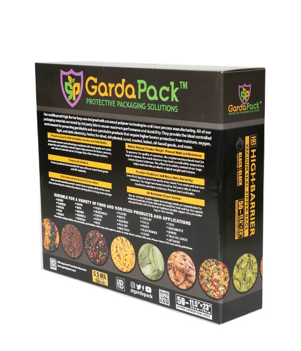 GardaPack 11.5” x 23” High-Barrier Pro 5.5 Mil Double Zipper Vacuum Seal Bags, Anti-UV, Static-Resistant – 50 Count (Black & Black)