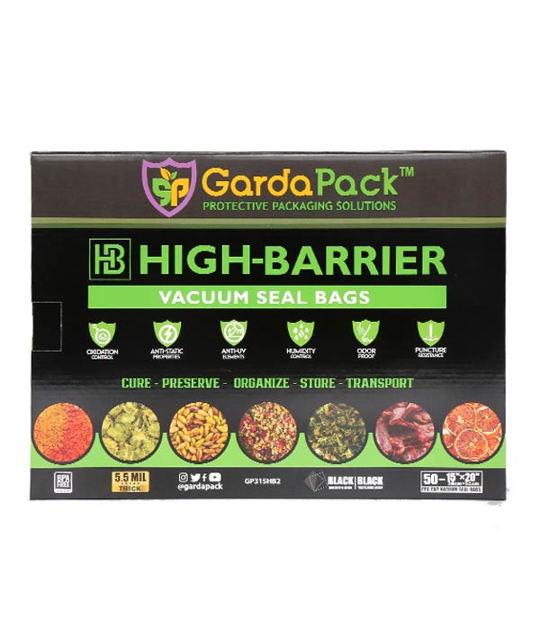Our 5.5-Mil High-Barrier Pro line has an extra layer of protection that keeps products fresher for up to 5-10x longer. The multiple layers of polymer film create an extra strong barrier that prevents odor, moisture, and other contaminants from entering or exiting the bag. Your products’ quality is effectively maintained, and in some cases, improved while in storage.