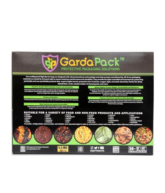 GardaPack 15” x 20” High-Barrier Pro 5.5 Mil Vacuum Seal Bags, Anti-UV, Static-Resistant – 50 Count (Black & Black)