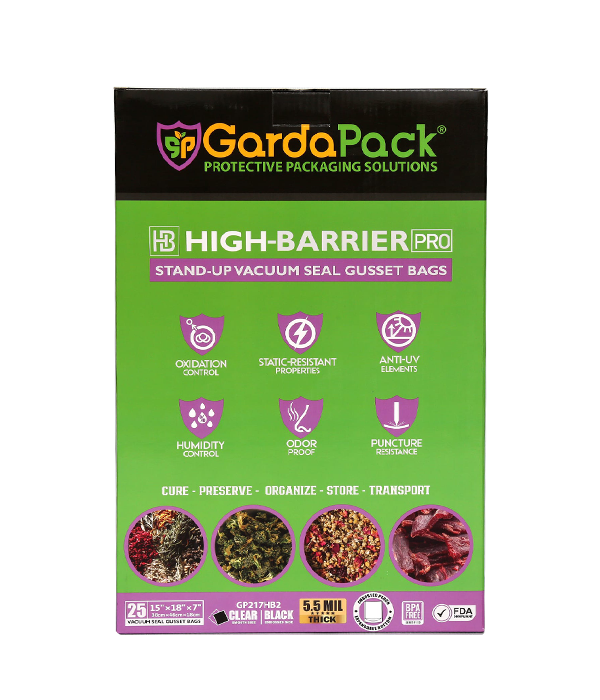 With our High-Barrier Pro Vacuum Seal Gusset Bags, you can confidently extend the shelf life, maintain weight, enhance flavor, protect texture, prevent mold or dryness, and preserve the delicate profiles of your oxygen-sensitive products until you’re ready to use them. Store, cure, transport, and organize your products confidently with the ultimate protection of our High-Barrier Pro line