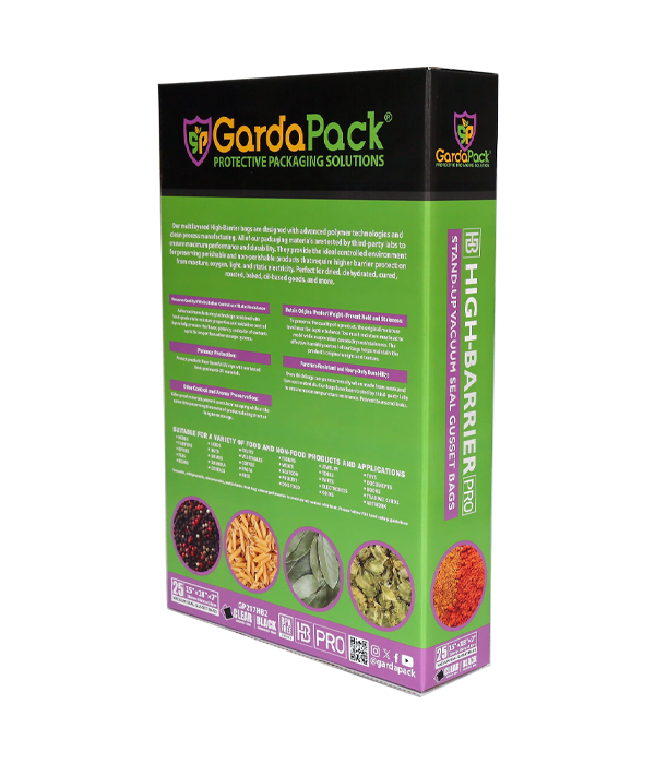 The advanced technology of our High-Barrier Pro vacuum seal gusset bags effectively slows down the growth of bacteria and other microorganisms, which are responsible for product deterioration. Oxidation and mold are also effectively prevented. Store and transport products confidently with a high level of puncture resistance, which prevents the bags from tearing and causing leaks.
