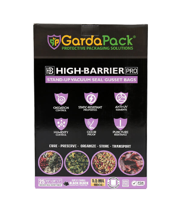 With our High-Barrier Pro Vacuum Seal Gusset Bags, you can confidently extend the shelf life, maintain weight, enhance flavor, protect texture, prevent mold or dryness, and preserve the delicate profiles of your oxygen-sensitive products until you’re ready to use them. Store, cure, transport, and organize your products confidently with the ultimate protection of our High-Barrier Pro line
