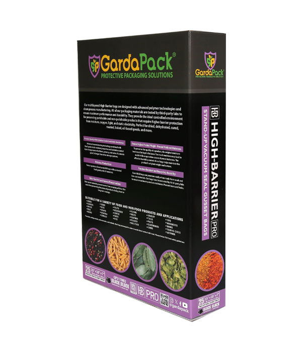 The advanced technology of our High-Barrier Pro vacuum seal gusset bags effectively slows down the growth of bacteria and other microorganisms, which are responsible for product deterioration. Oxidation and mold are also effectively prevented. Store and transport products confidently with a high level of puncture resistance, which prevents the bags from tearing and causing leaks.