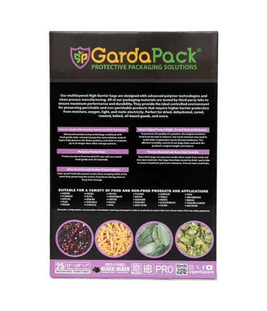 GardaPack 15” x 18″ x 7″ High-Barrier Pro 5.5 Mil Vacuum Seal Gusset Bags, Anti-UV, Static-Resistant – 25 Count (Black & Black)